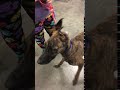 Dakota thinks she is a lap dog , she will follow you around where ever you go. She's great with any size dog from 10 pounds to 60 pounds and she is great with the cats. She know sit, down and shake.