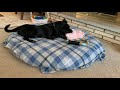 I go to my crate by myself at night or I can sleep on my bed as well.